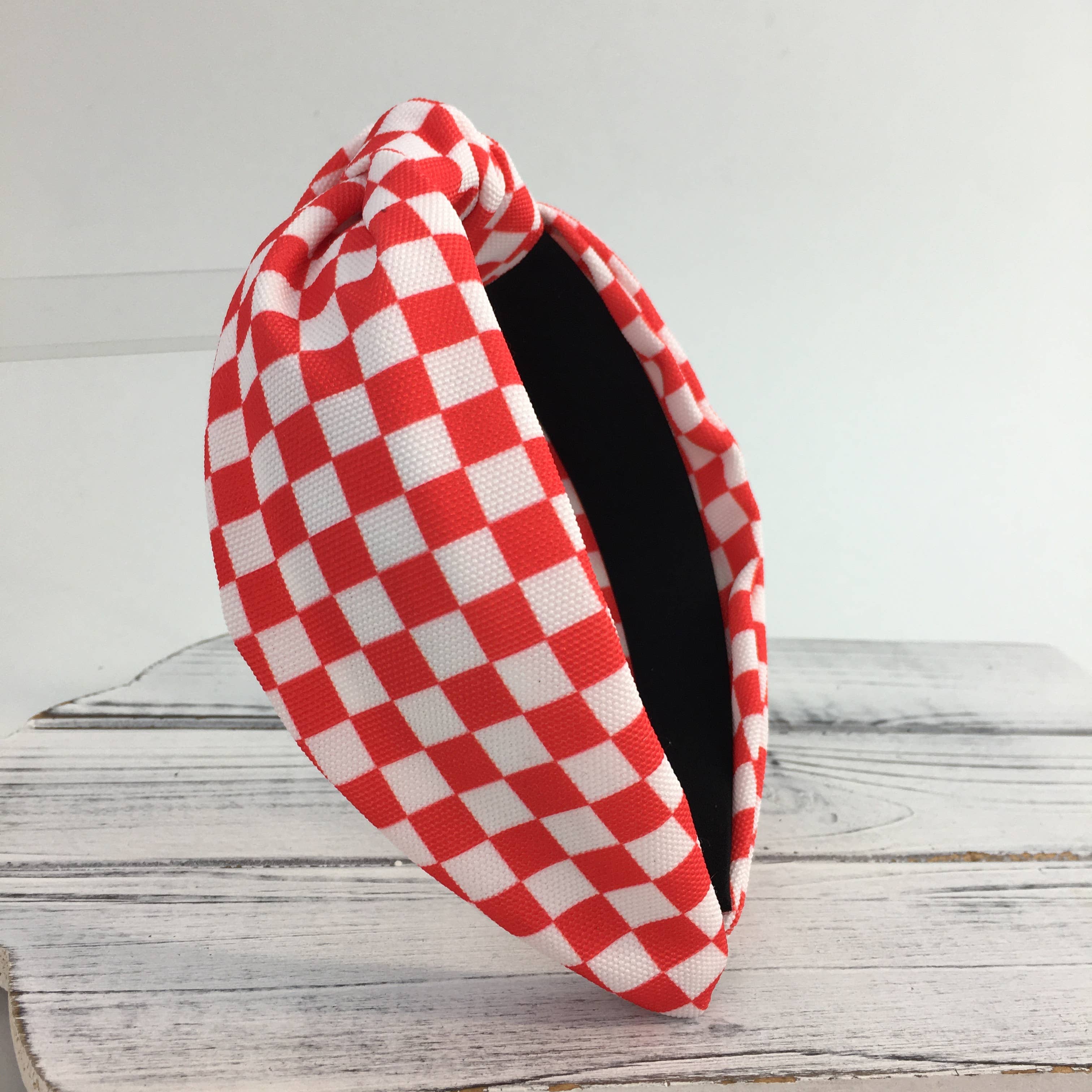 Red and White Checkered Knot Headband
