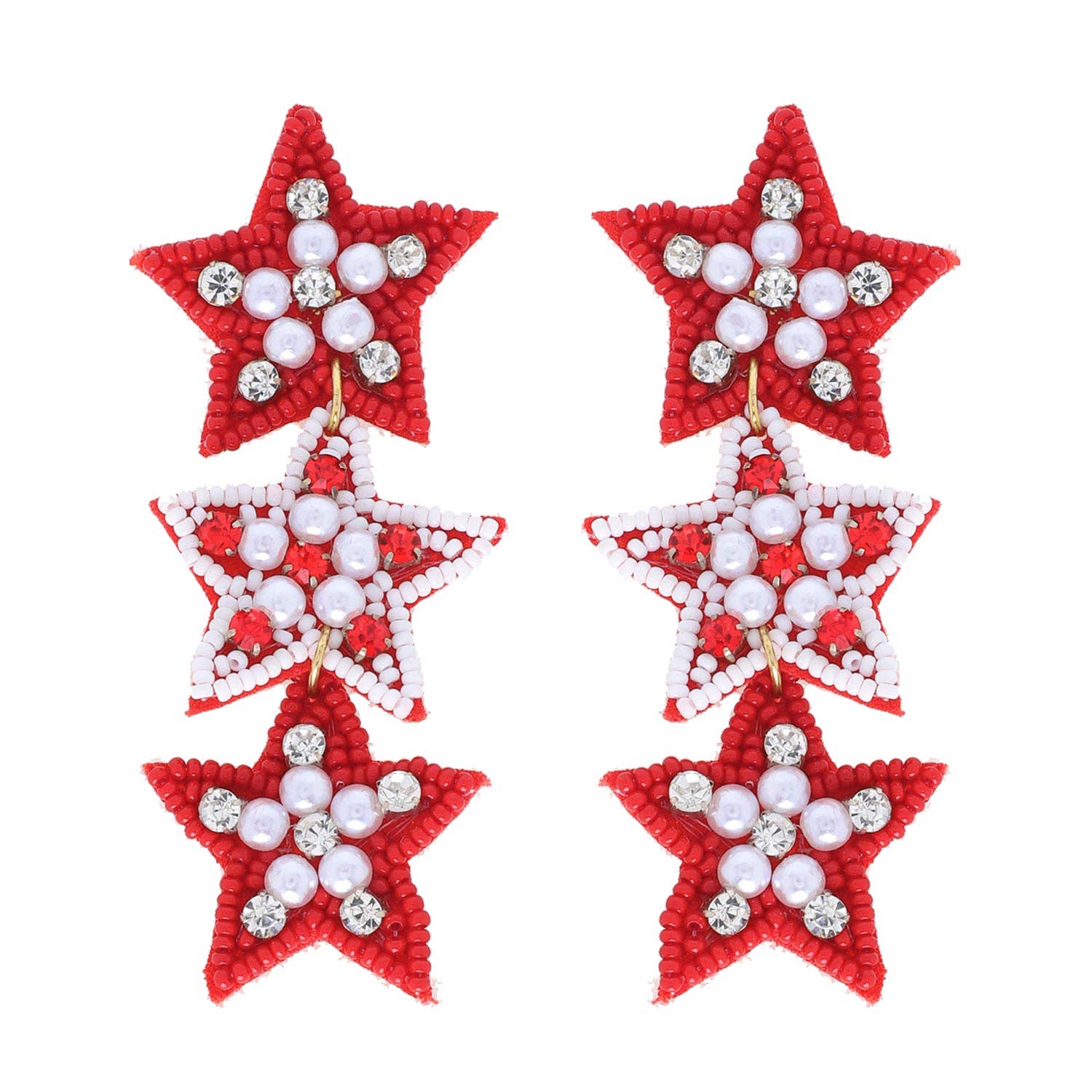 Burgundy & White Beaded Bling Star Earrings