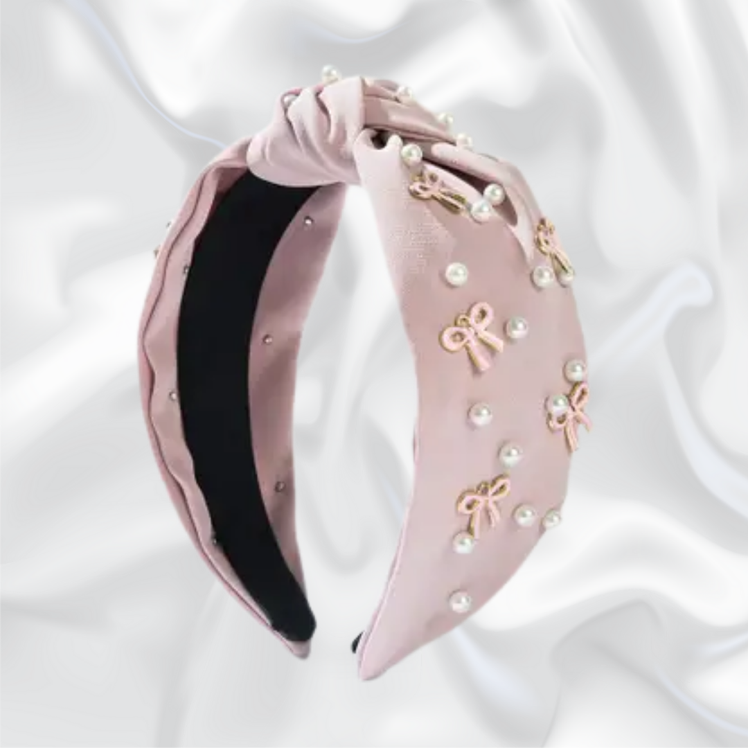 Bows and Pearls Headband Pink
