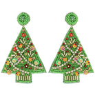 Add some holiday sparkle to your outfit with these Christmas tree jeweled post earrings. These festive earrings feature intricately designed trees with a touch of glam, making them the perfect accessory for any holiday party or gathering. Spread the holiday cheer with these elegant earrings. HEIGHT: 3.25" WIDTH: 2"