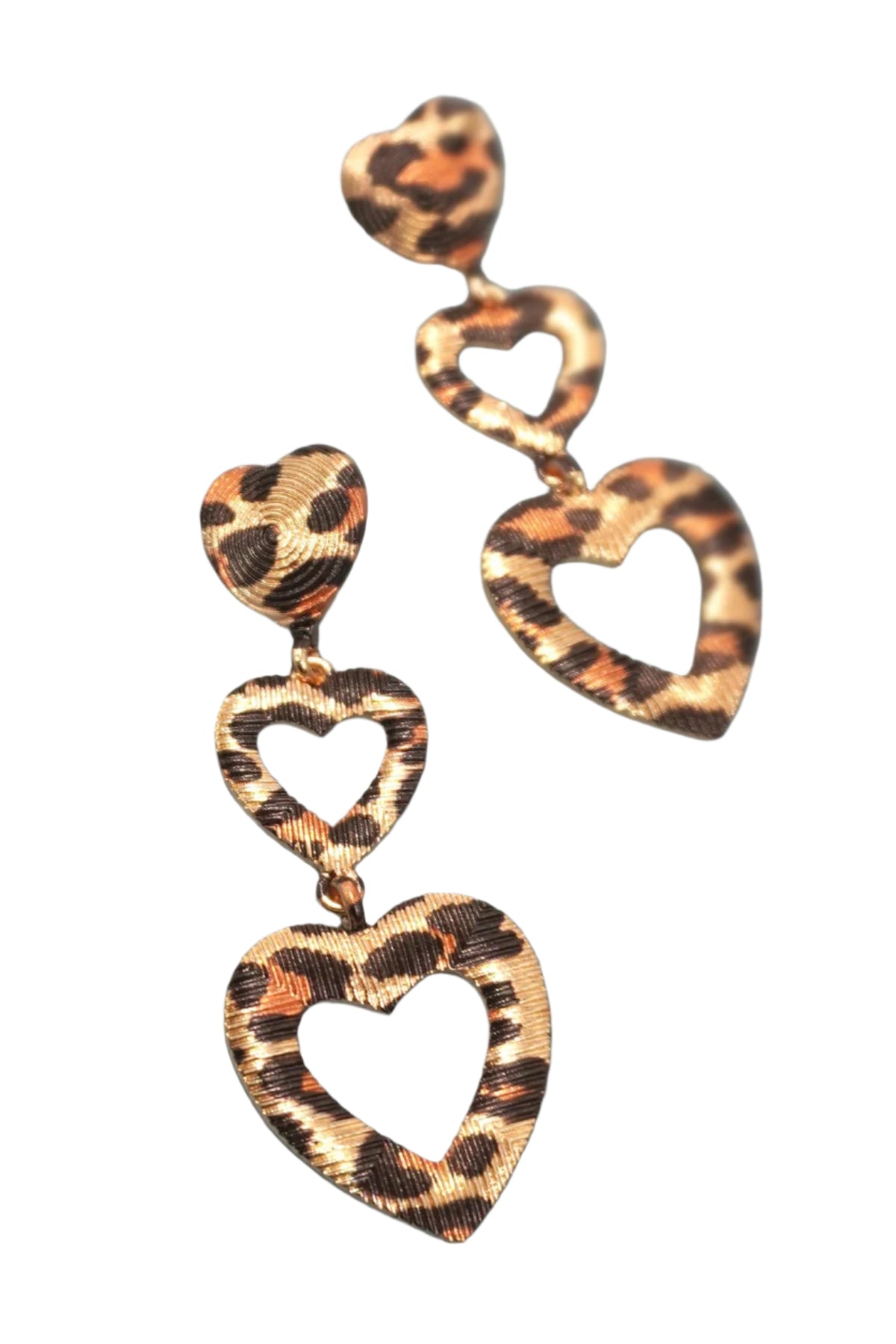 Animal Design Trio Heart Drop Earrings, a playful and stylish accessory featuring three heart-shaped charms with unique animal patterns. These drop earrings cascade beautifully, adding movement and personality to any outfit. Product Details: Length: 3" Width: 1" Earring back: Titanium Post Metal finish: gold Plating Product: Lead & Nickel Compliant Anti-tarnish: Double E-coating The titanium posts ensure durability and hypoallergenic wear, making them suitable for sensitive ears. Hypoallergenic post Surgical steel post Lightweight post Durable post
