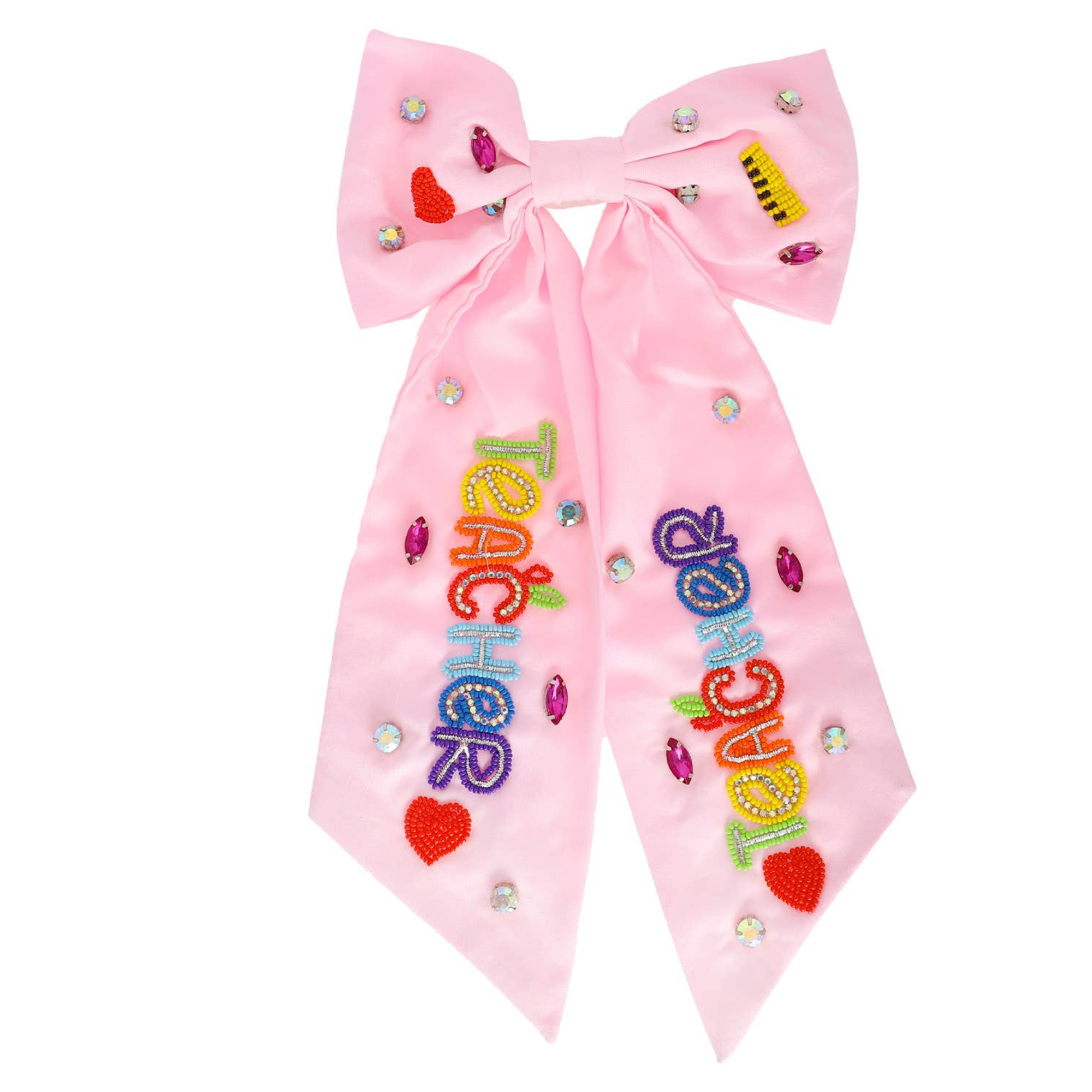 Pink Teacher Beaded Bow Clip