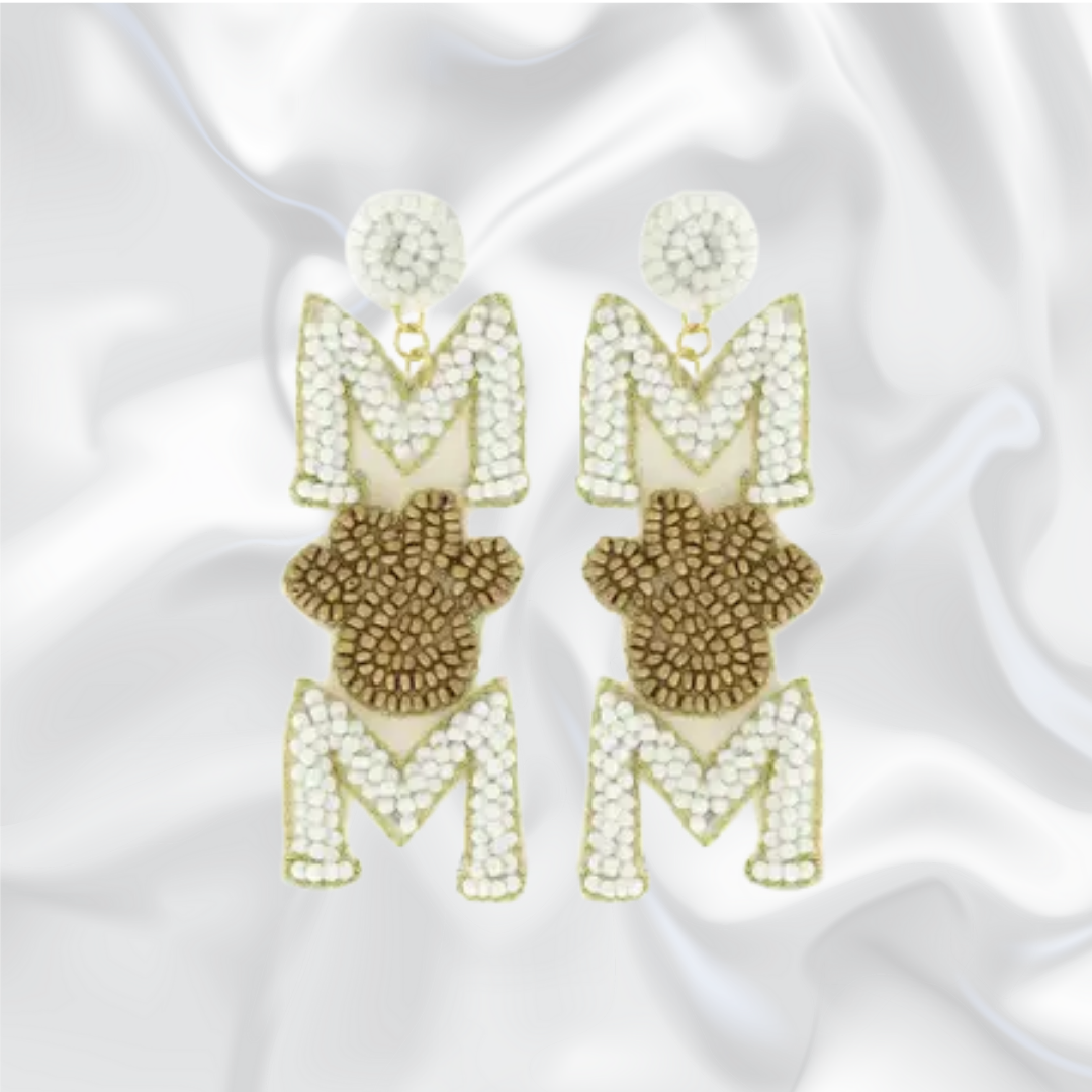Introducing the Beaded Bear Paw "Mom" Dangle Earrings, a unique and sentimental accessory perfect for honoring and celebrating moms. These earrings feature a special design where the beaded bear paw replaces the letter "o" in the word "mom."