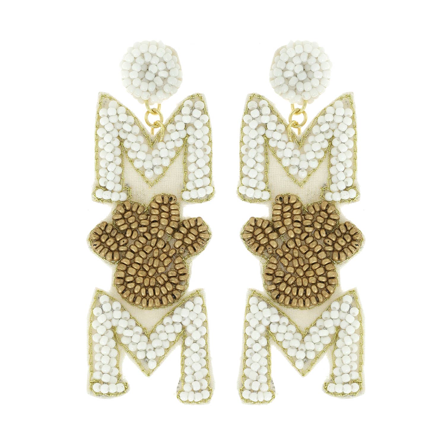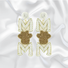 Beaded Bear Paw "Mom" Dangle Earrings: White