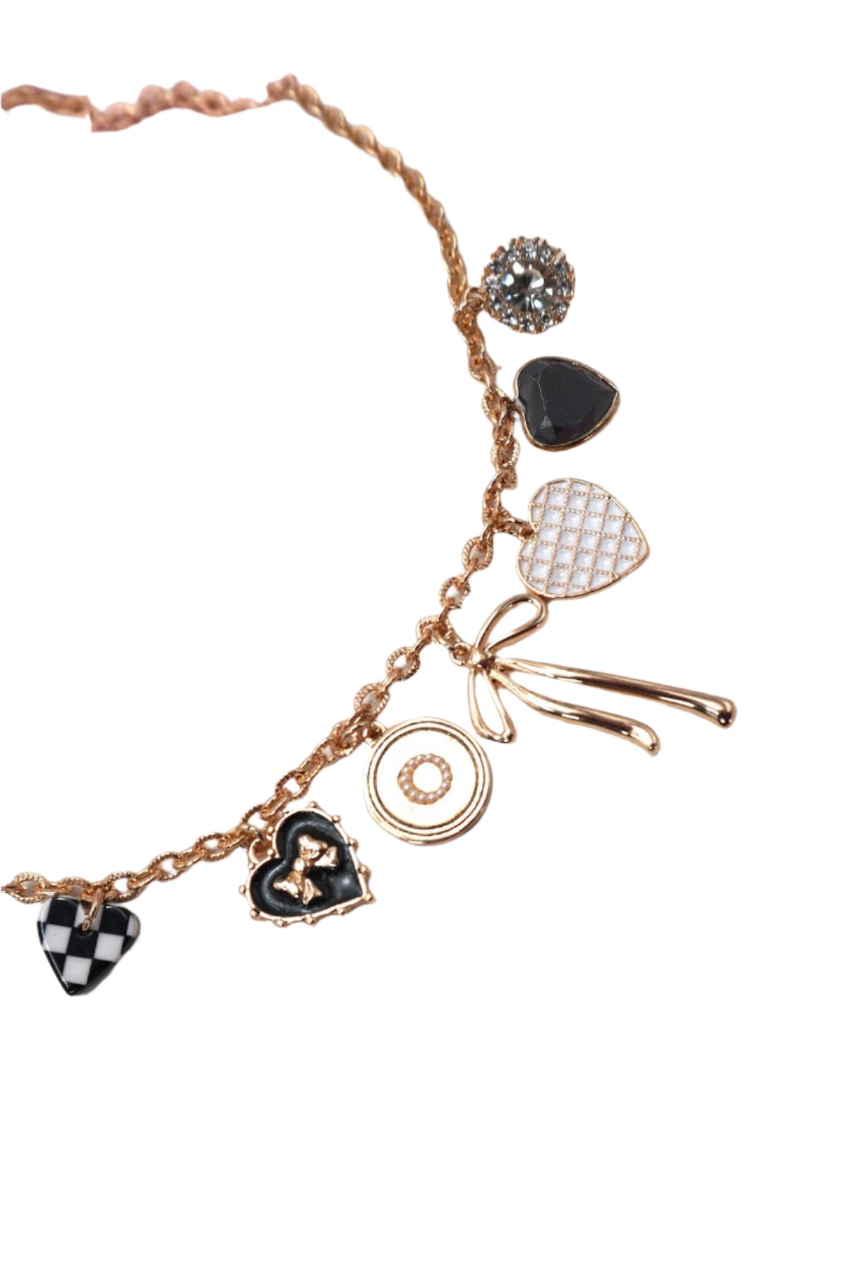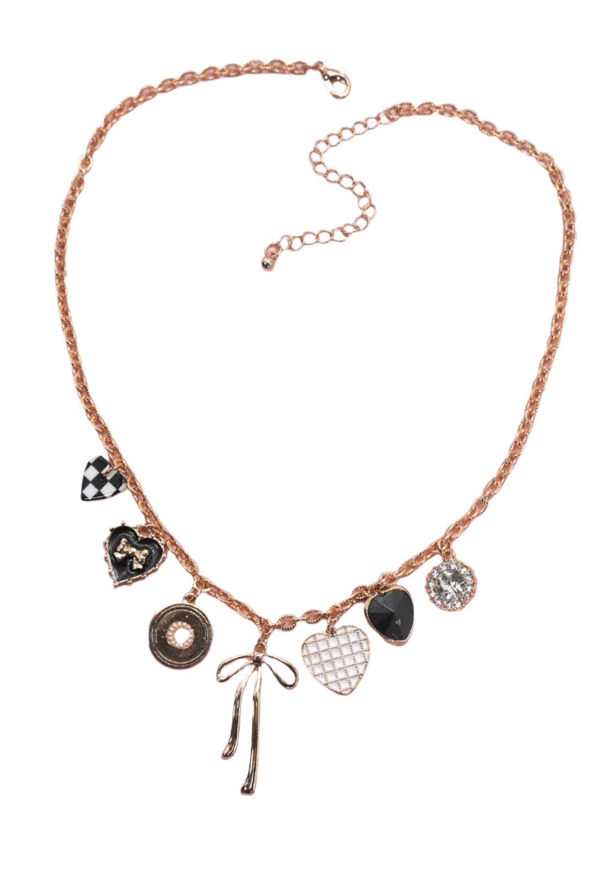 Black Bow and Hearts Charm Necklace